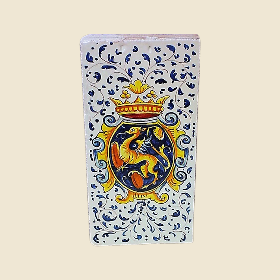 Rectangular tile cm 30 x 15 Griffin cote of arms asnd blue swirls