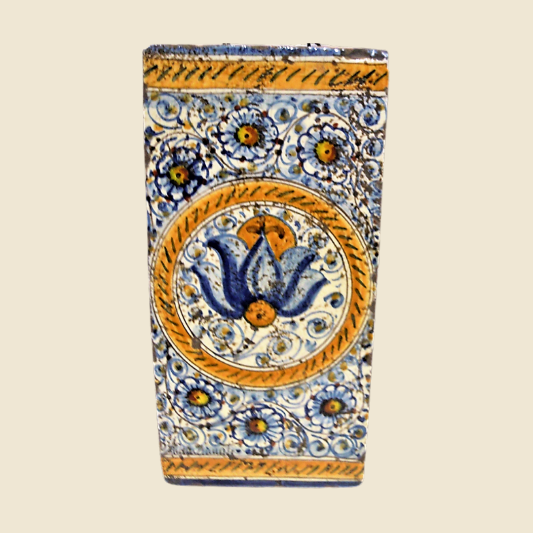 Rectangular tile, commonly called first stone – the brick usually used to pave rural structures typical of the Tuscan countryside. Tuscan terracotta, especially from the Impruneta area, is highly appreciated and known for its waterproof characteristics and resistance to low temperatures, as well as its beautiful terracotta shades; makes it unique, recognizable and highly sought after. We use this kind of tile, with its irregularities, veins, at first glance imperfections of handmade terracotta; to create artefacts with classic decorations, which come from distant times and places; but it is precisely thanks to these irregularities that our products take on a worn, lived-in appearance that smells of antiquity; these imperfections are like scars that make every single product unique and unrepeatable.